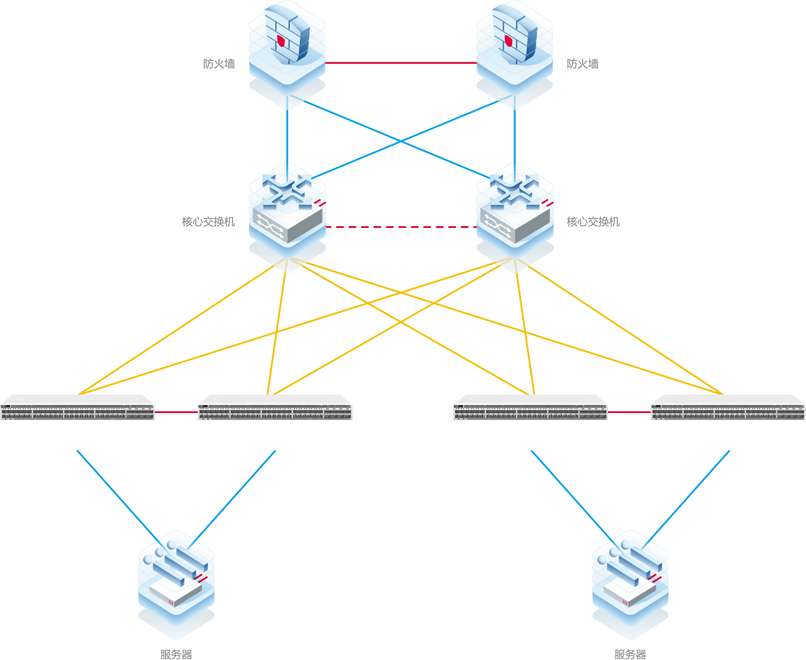 • 虚拟化技术加持,实现设备级冗余,灵活组网可靠性强